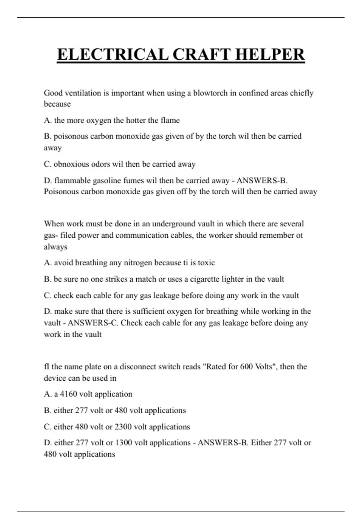 vault - ANSWERS-C. Check each cable for any gas leakage before doing any