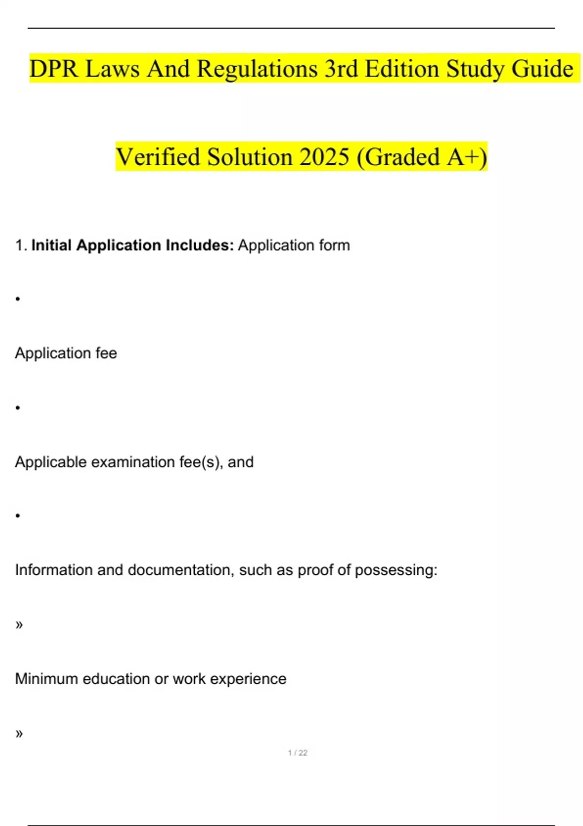 DPR Laws And Regulations 3rd Edition Study Guide Verified Solution 2025 (Graded A+)DPR Laws And Regulations 3rd Edition Study Guide Verified Solution 2025 (Graded A+)DPR Laws And Regulations 3rd Edition Study Guide Verified Solution 2025 (Graded A+)DPR Laws And Regulations 3rd Edition Study Guide Verified Solution 2025 (Graded A+)