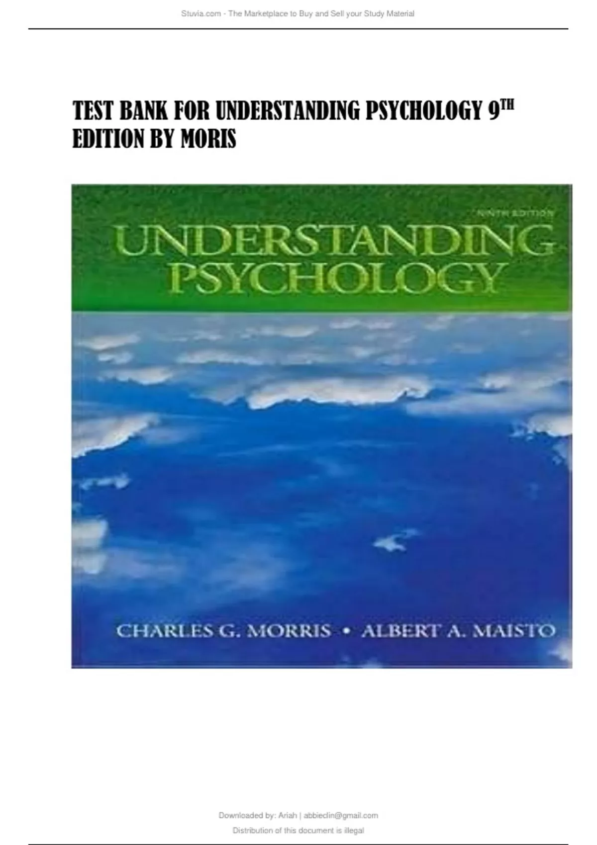Test Bank for Understanding Psychology 9th Edition by Charles G. Morris (Author), Albert A. Maisto (Author) - (2025/2026) (All Chapters Covered) (Complete Guide with Answers) (Graded A+)
