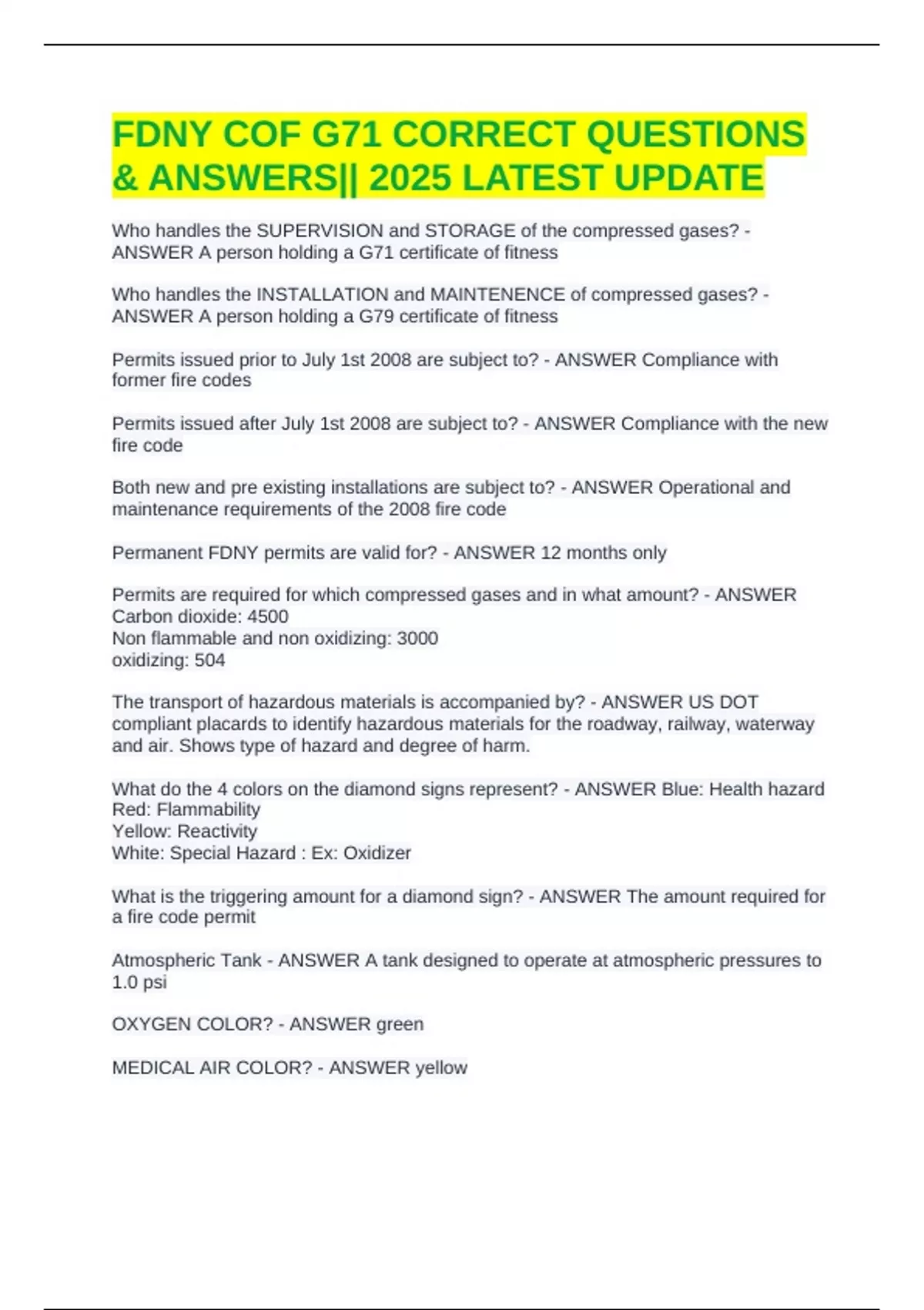 MEDICAL AIR COLOR? - ANSWER yellow