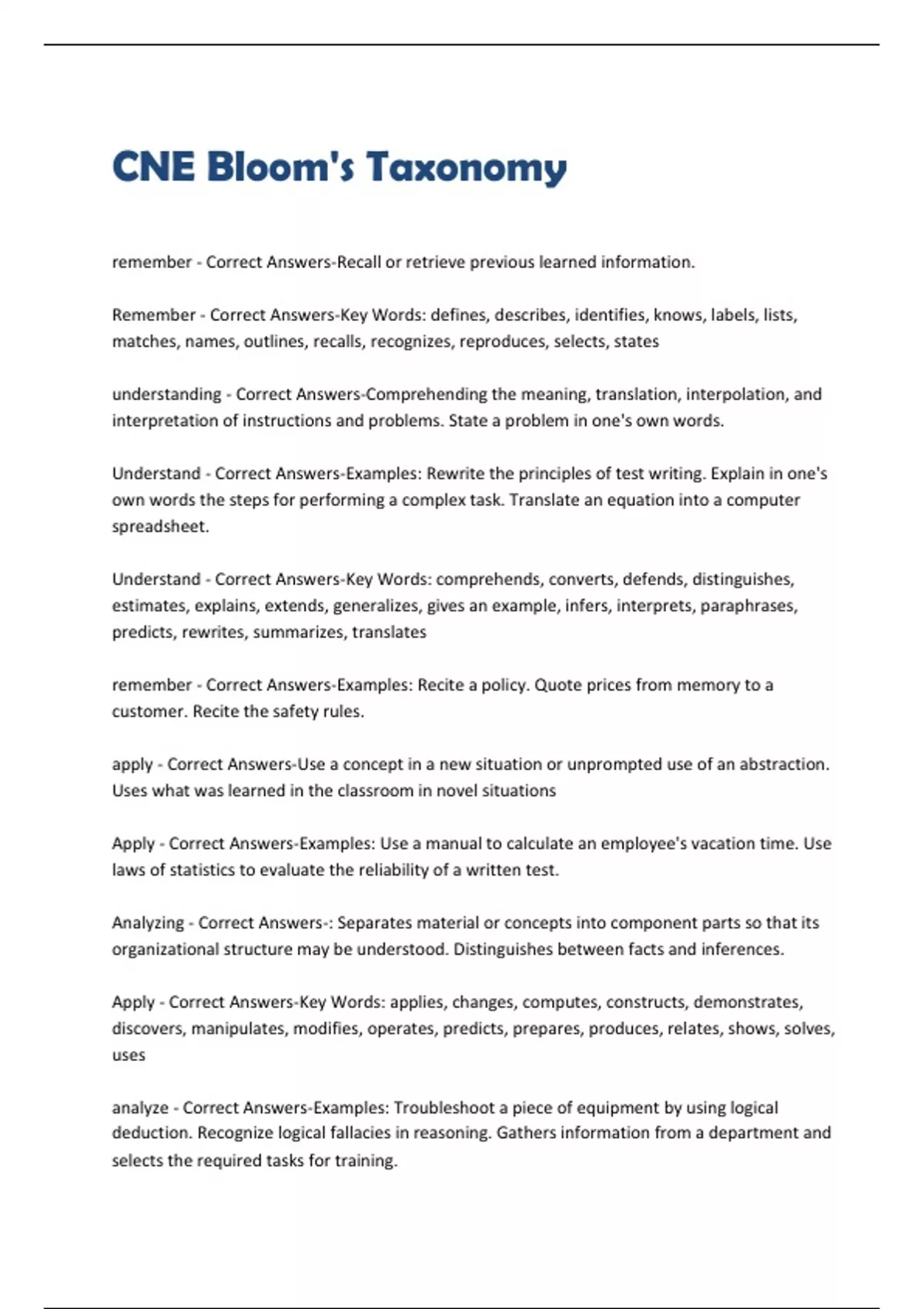 Understand - Correct Answers-Key Words: comprehends, converts, defends, distinguishes,