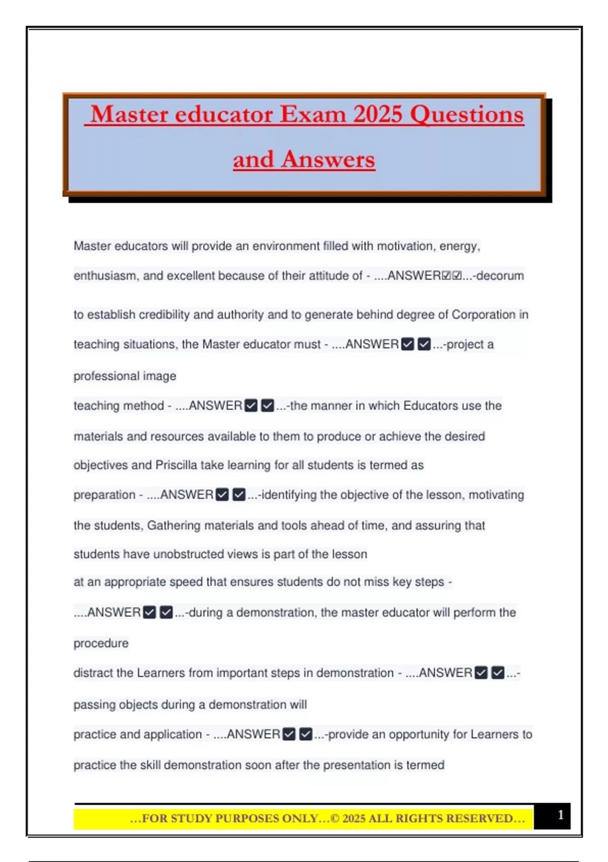 …FOR STUDY PURPOSES ONLY…©️ 2025 ALL RIGHTS RESERVED… 1
