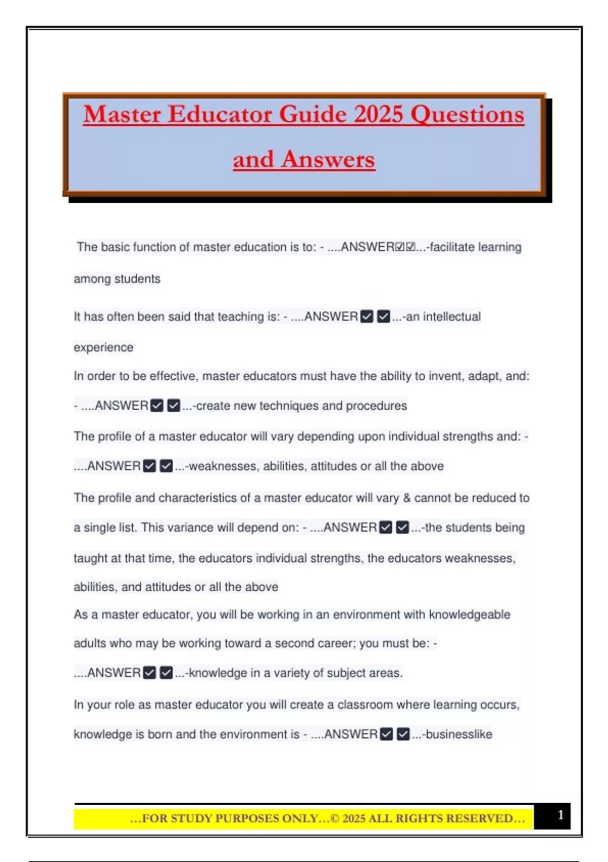 Master Educator Guide 2025 Questions and Answers