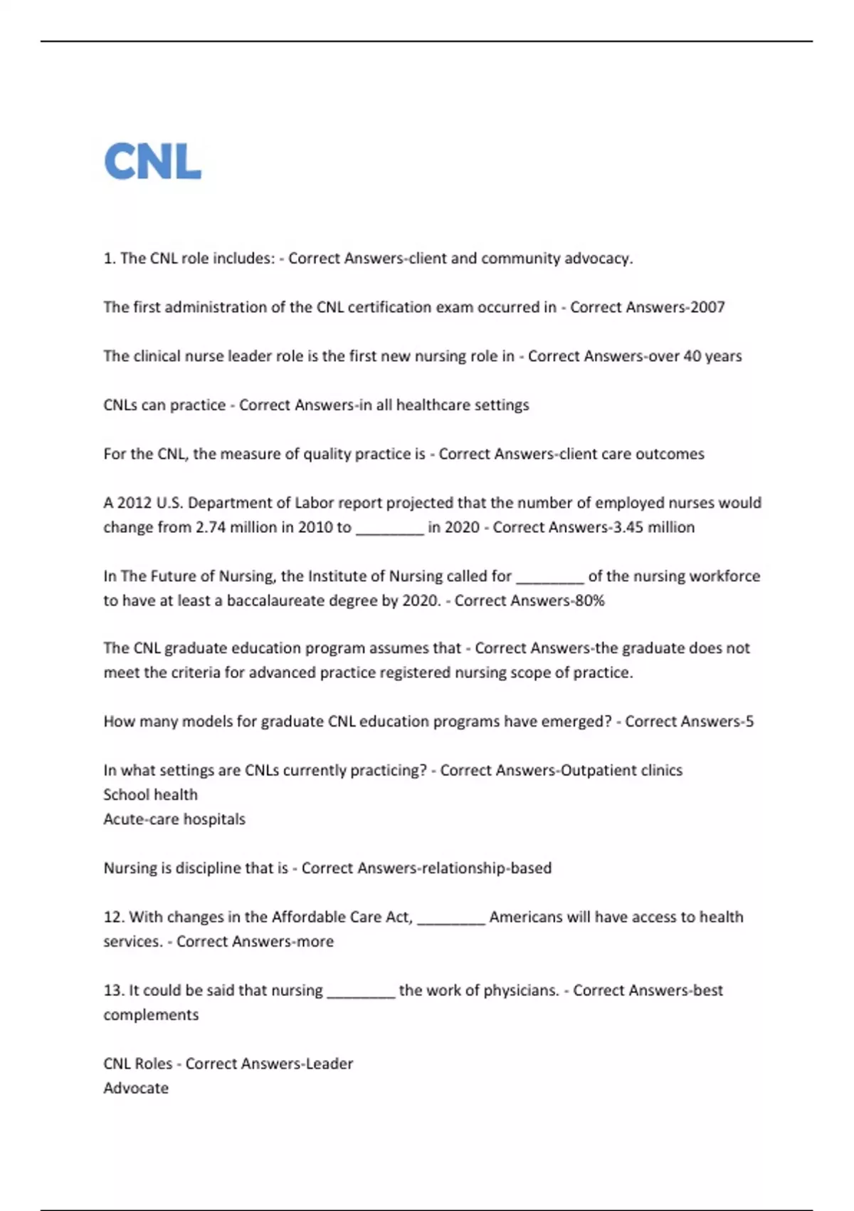 The CNL graduate education program assumes that - Correct Answers-the graduate does not