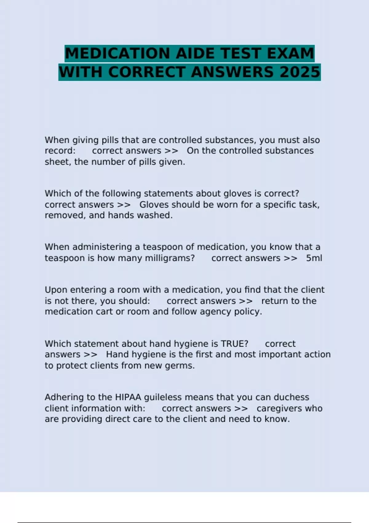 MEDICATION AIDE TEST EXAM WITH CORRECT ANSWERS 2025
