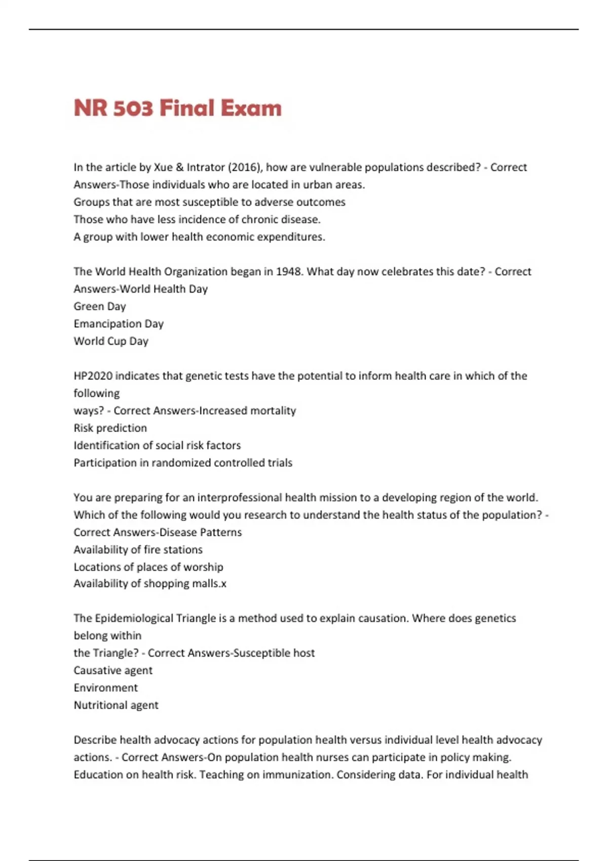 actions. - Correct Answers-On population health nurses can participate in policy making.