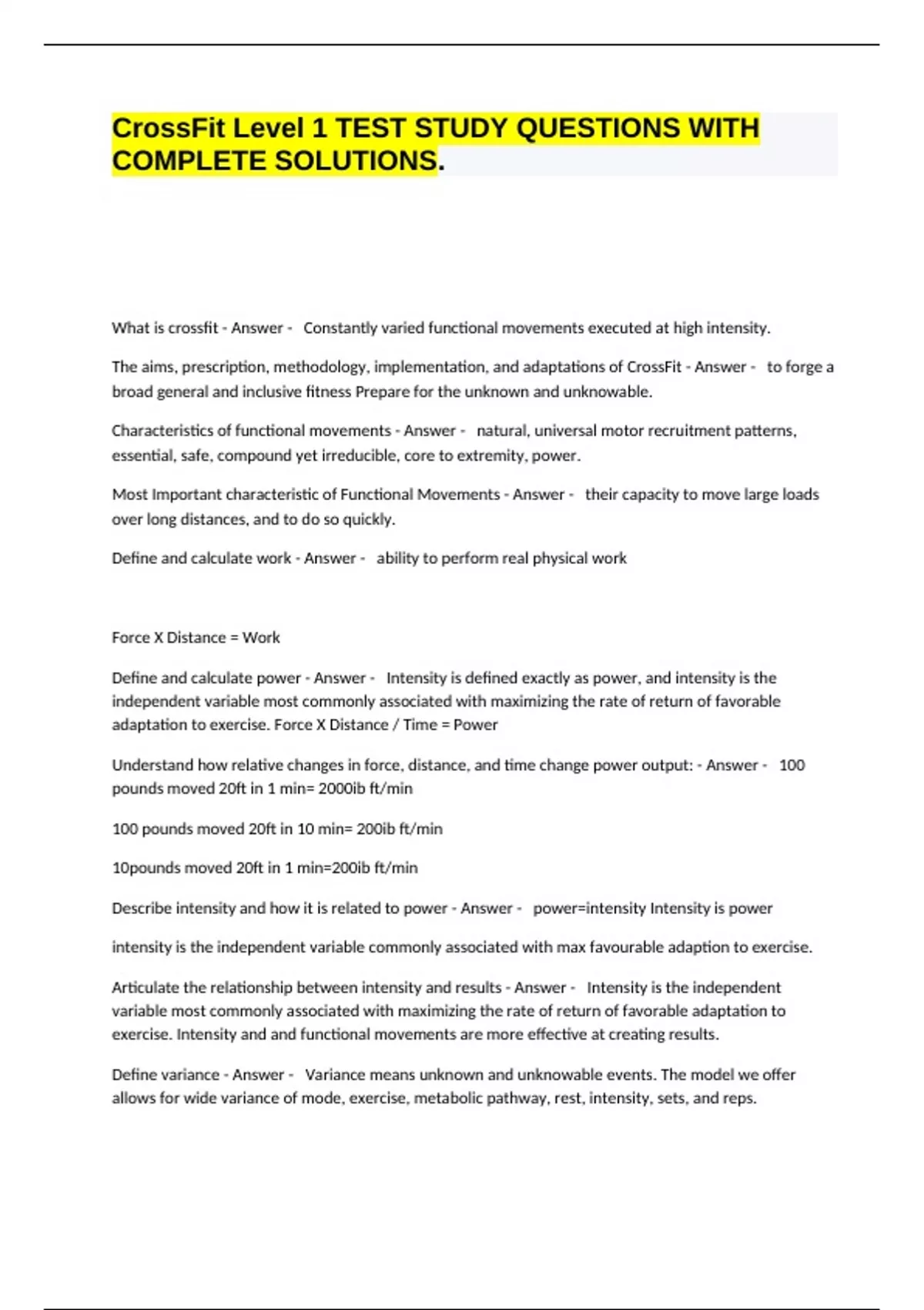 Articulate CrossFit's definition of fitness and health, and their relationship - Answer - Fitness- Work