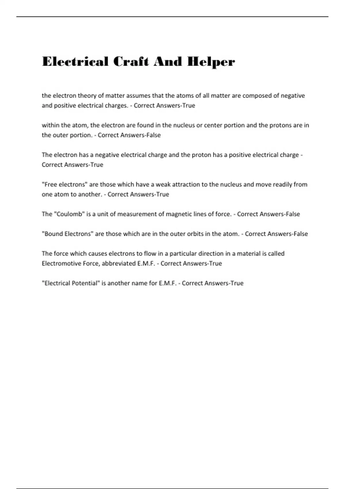 "Electrical Potential" is another name for E.M.F. - Correct Answers-True