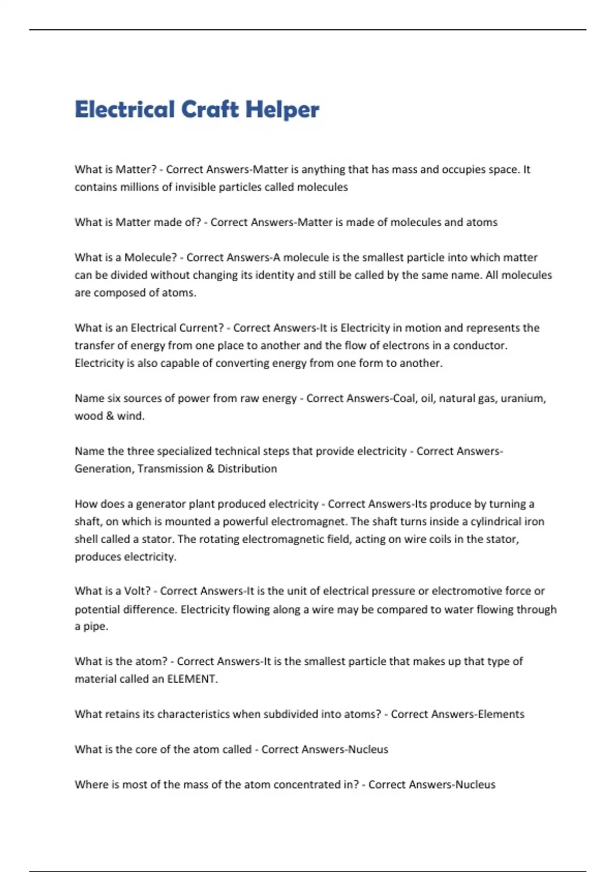 What is a Volt? - Correct Answers-It is the unit of electrical pressure or electromotive force or