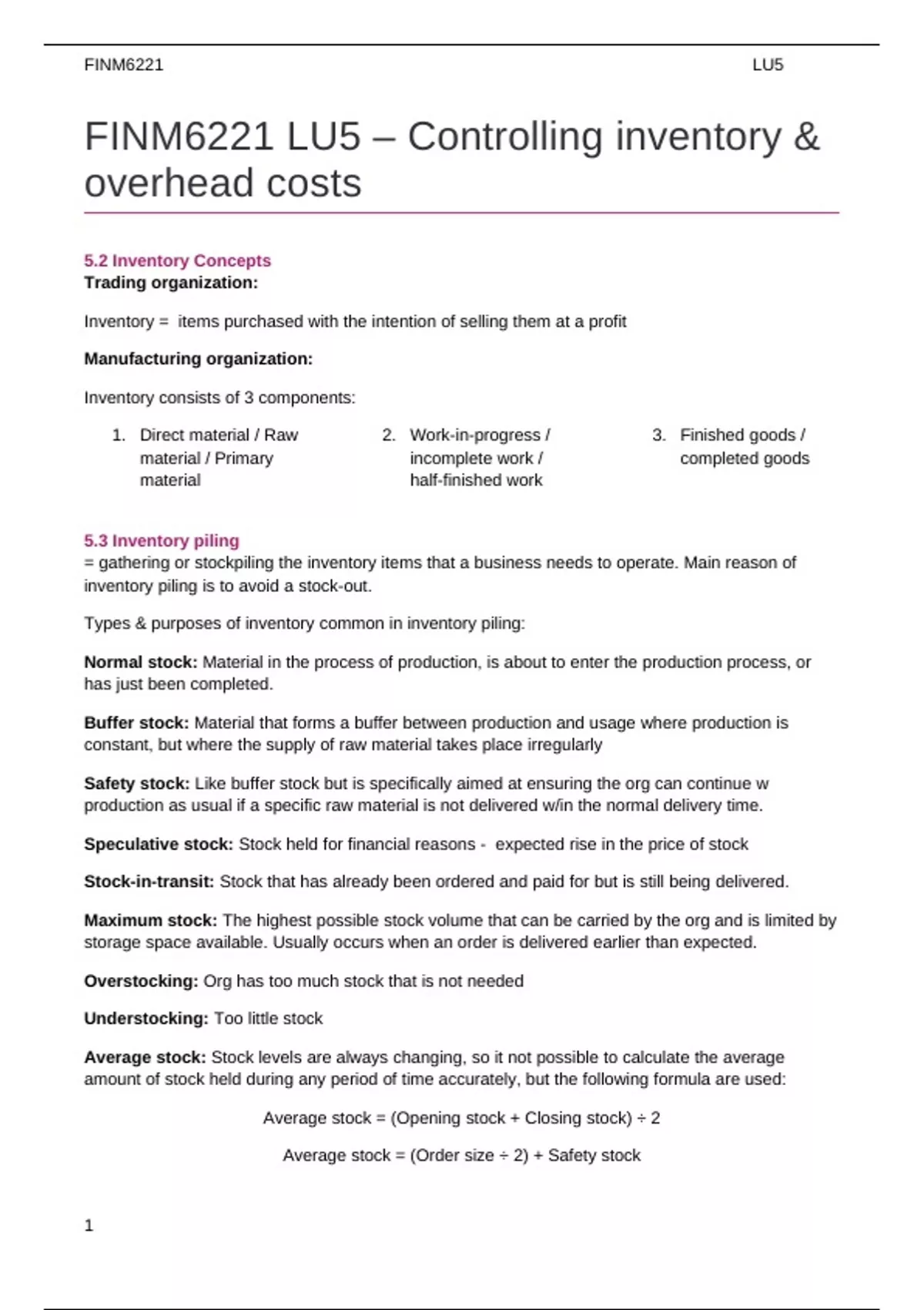 1. Direct material / Raw 2. Work-in-progress / 3. Finished goods /