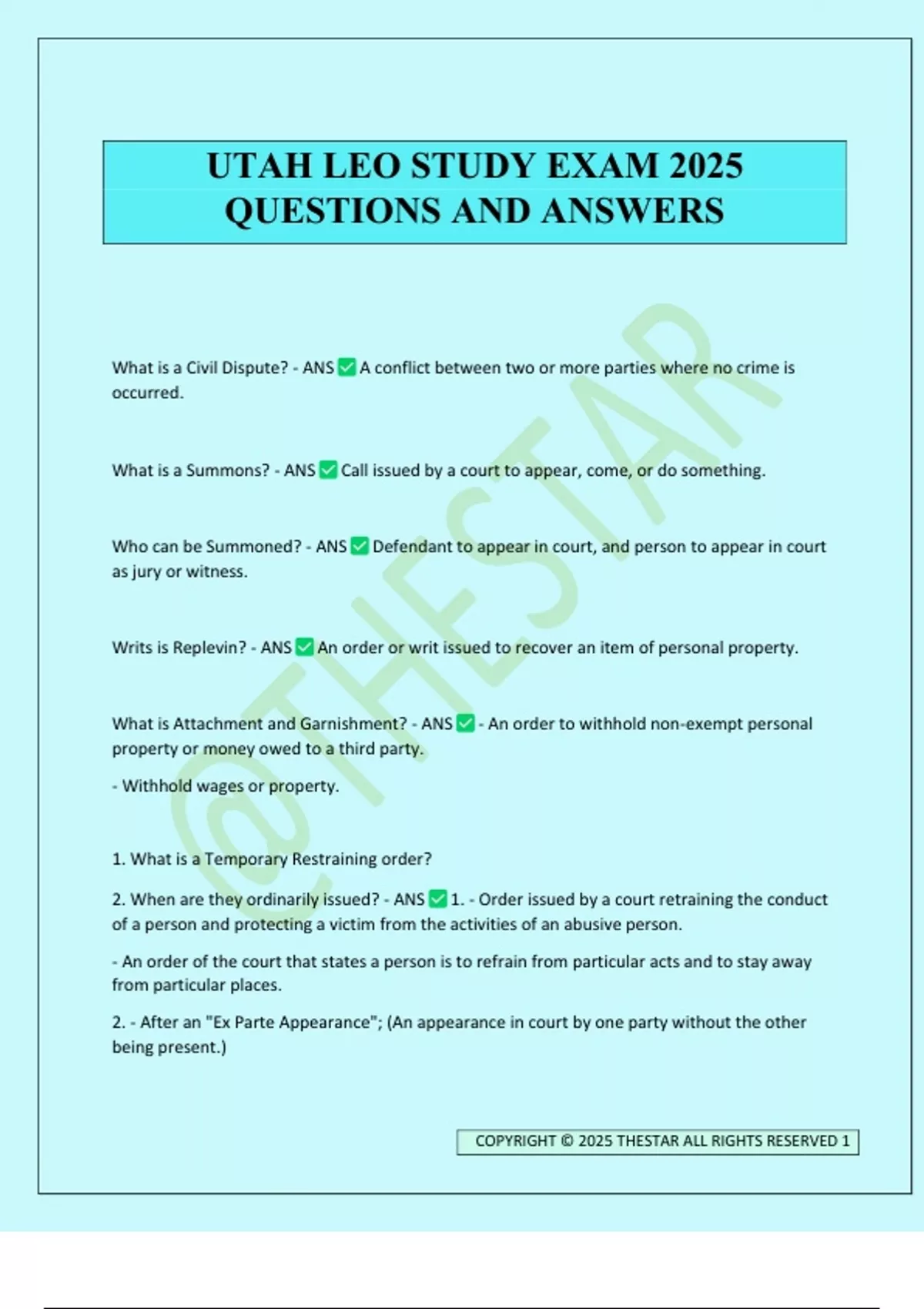 UTAH LEO STUDY EXAM 2025 QUESTIONS AND ANSWERS