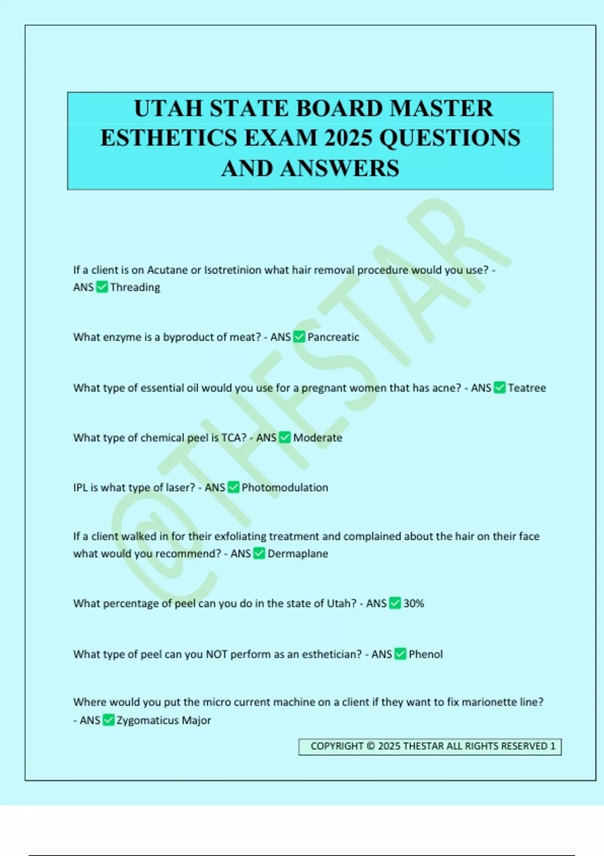 ESTHETICS EXAM 2025 QUESTIONS