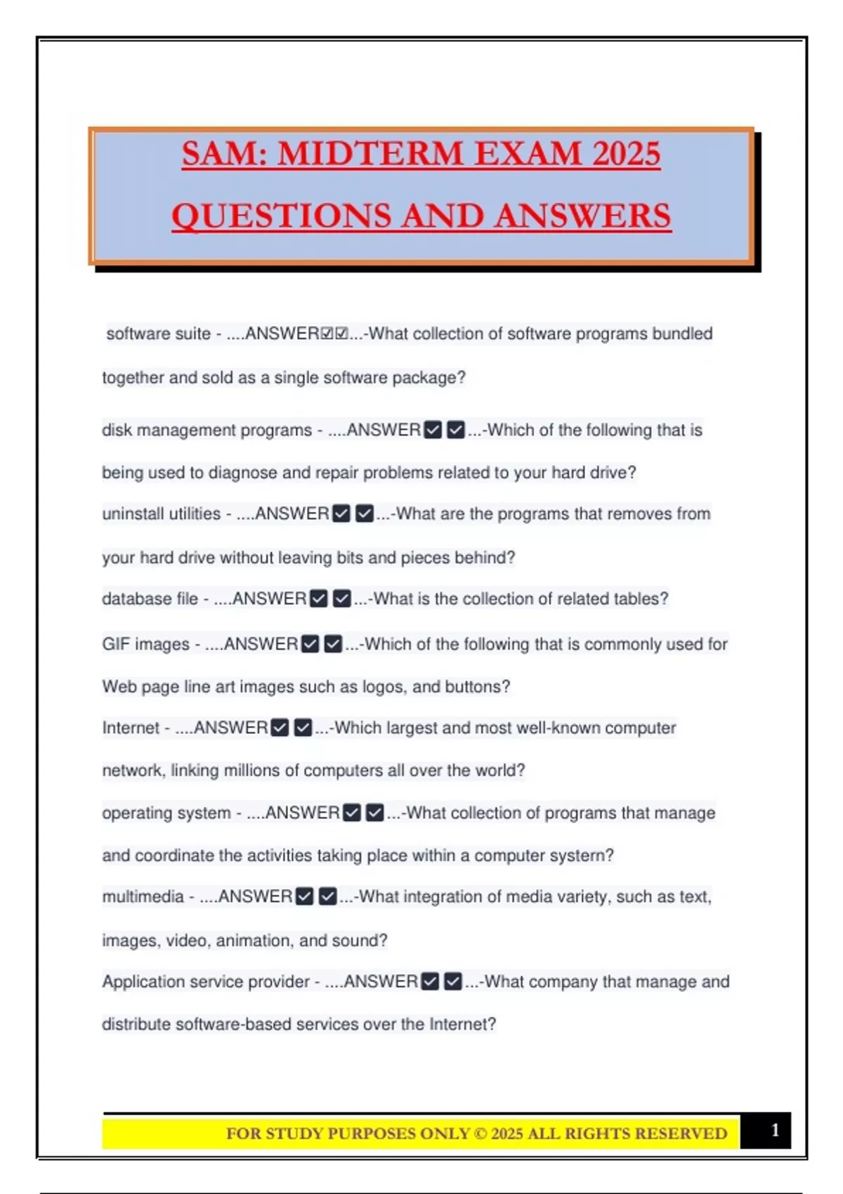 FOR STUDY PURPOSES ONLY ©️ 2025 ALL RIGHTS RESERVED 1