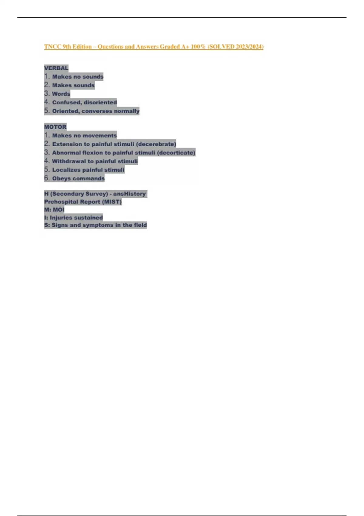 , TNCC 9th Edition – Questions and Answers Graded A+ 100% (SOLVED 2023/2024)