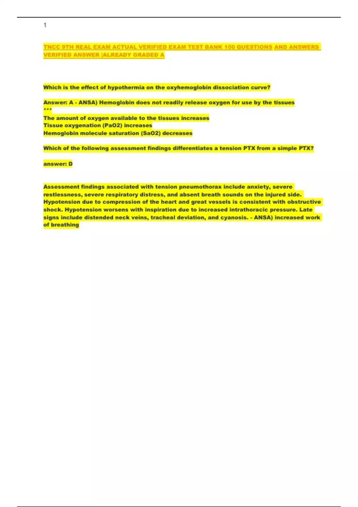 TNCC 9TH REAL EXAM ACTUAL VERIFIED EXAM TEST BANK 100 QUESTIONS AND ANSWERS