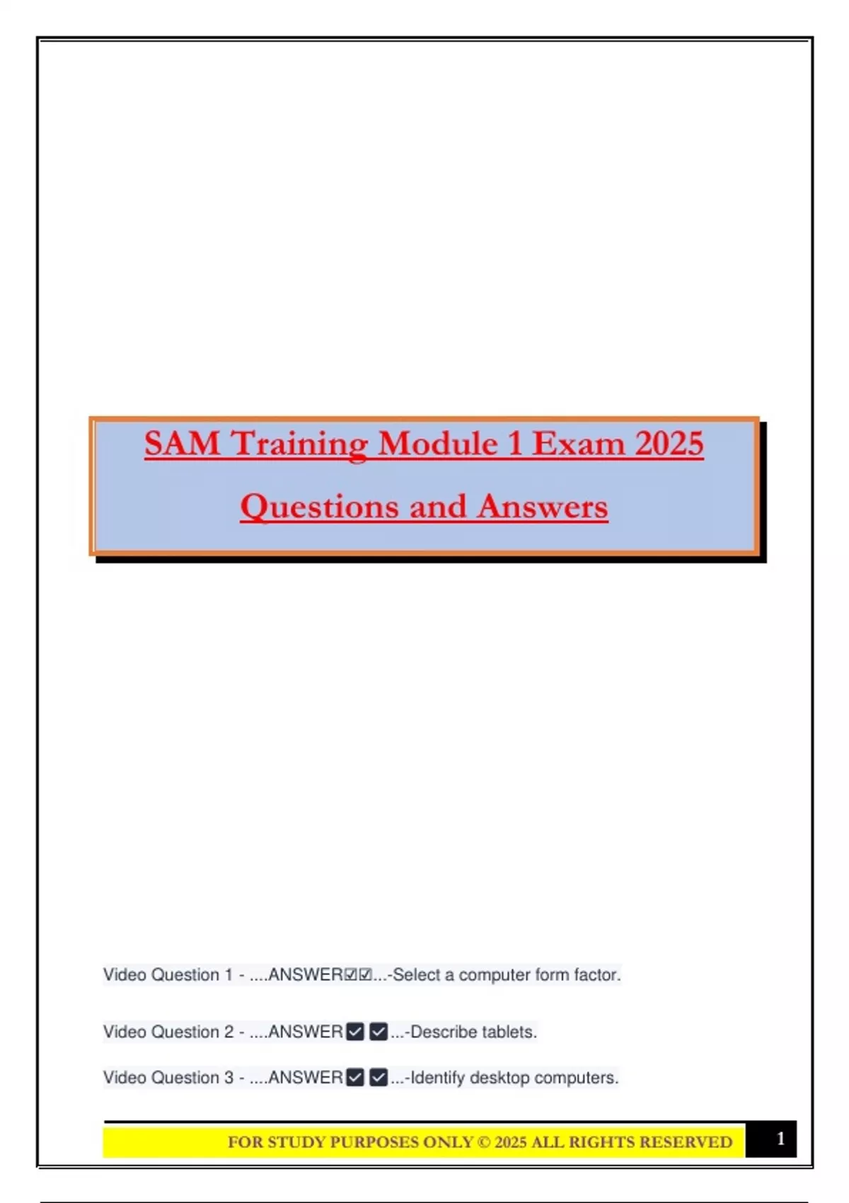 FOR STUDY PURPOSES ONLY ©️ 2025 ALL RIGHTS RESERVED 1
