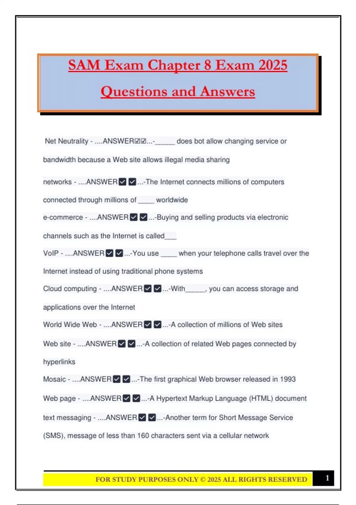 FOR STUDY PURPOSES ONLY ©️ 2025 ALL RIGHTS RESERVED 1