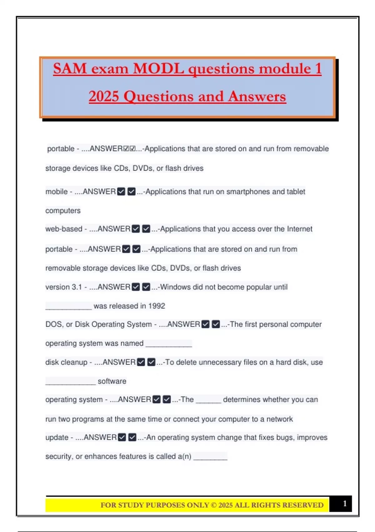 FOR STUDY PURPOSES ONLY ©️ 2025 ALL RIGHTS RESERVED 1