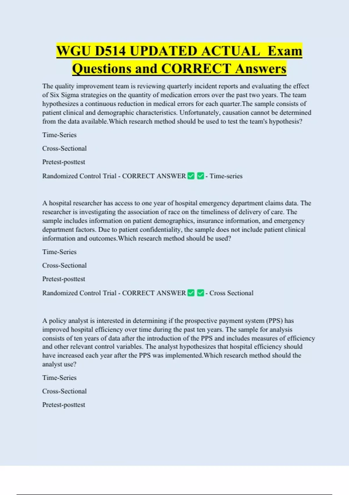 Randomized Control Trial - CORRECT ANSWER - Time-series