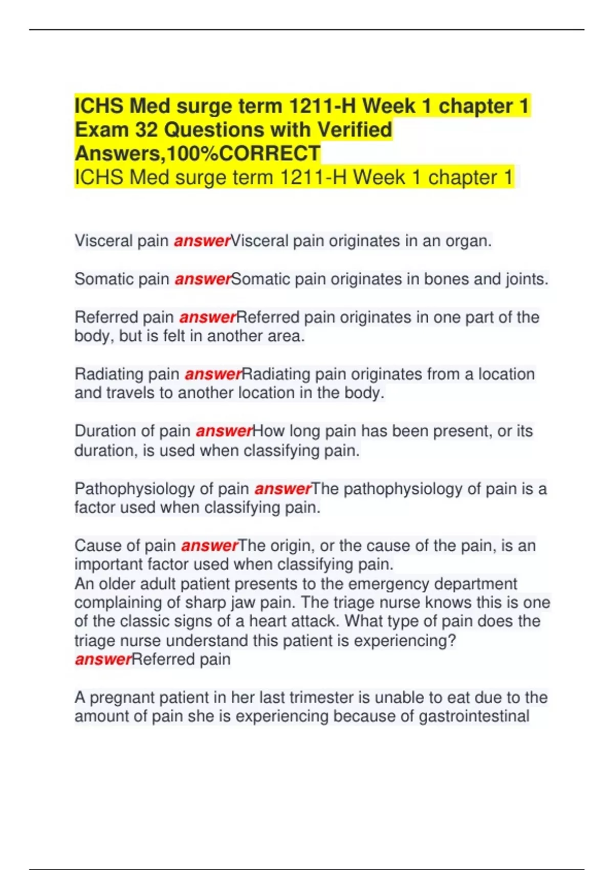 Referred pain answerReferred pain originates in one part of the