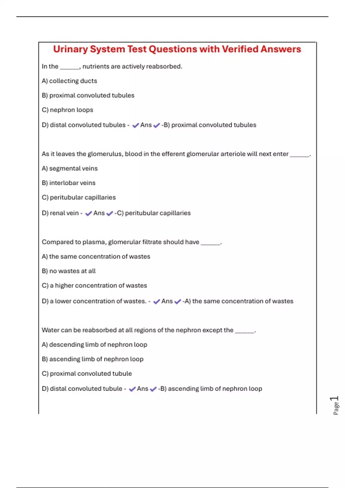 D) distal convoluted tubules - Ans -B) proximal convoluted tubules