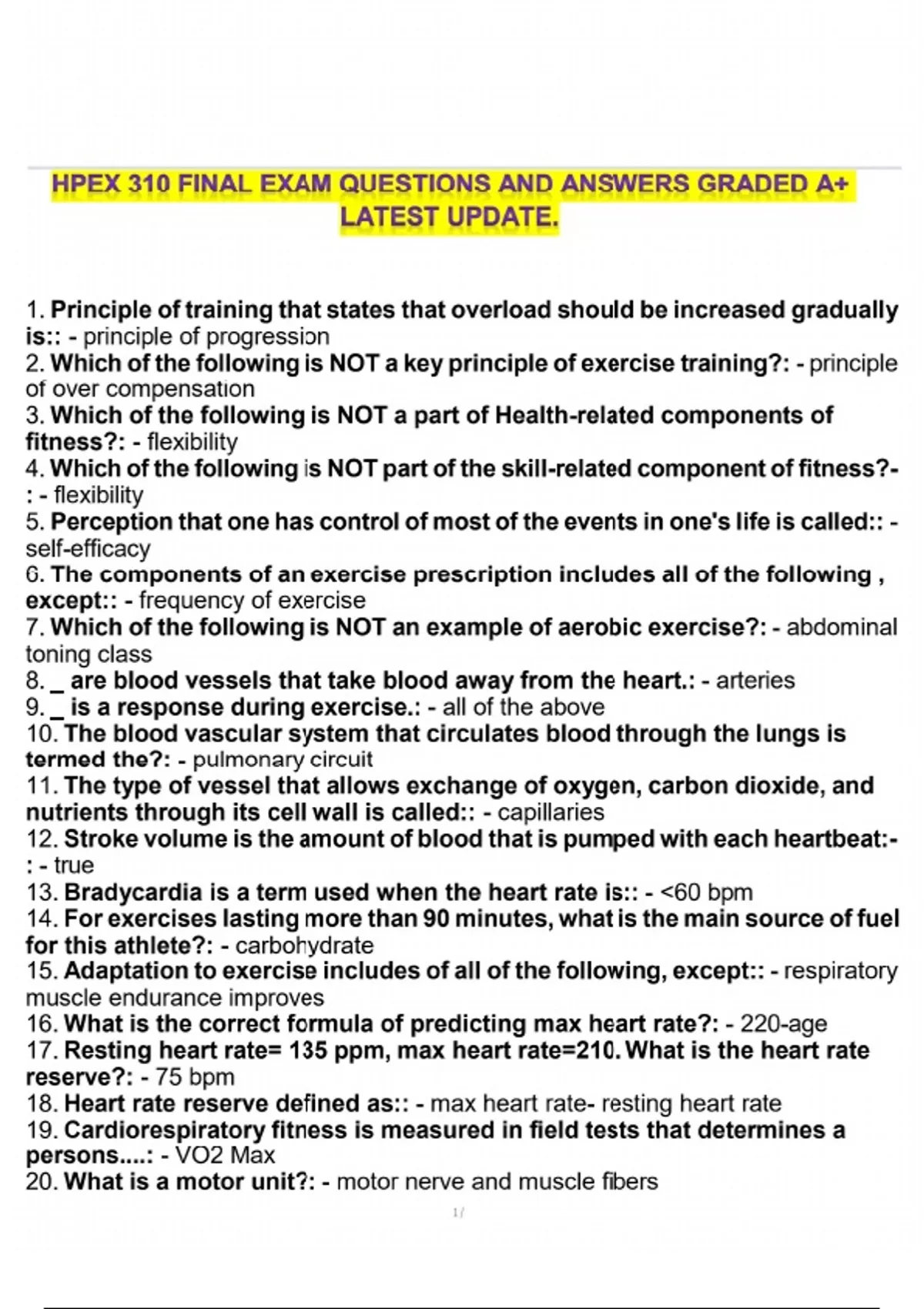 HPEX 310 FINAL EXAM QUESTIONS AND ANSWERS GRADED A+ LATEST UPDATE.