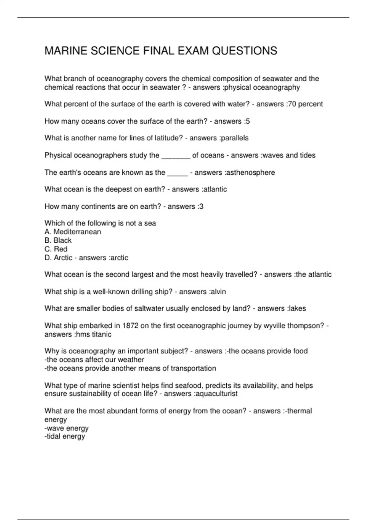 MARINE SCIENCE FINAL EXAM QUESTIONS