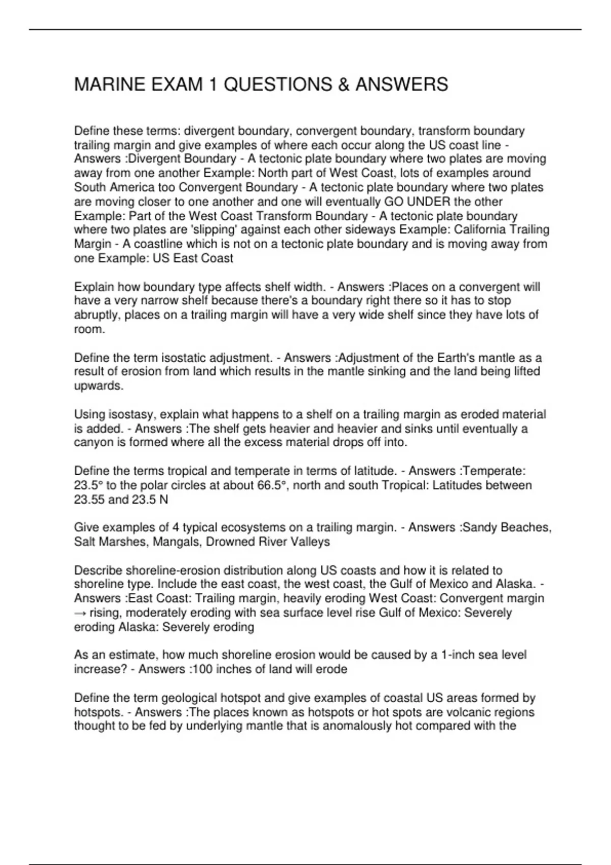 MARINE EXAM 1 QUESTIONS & ANSWERS