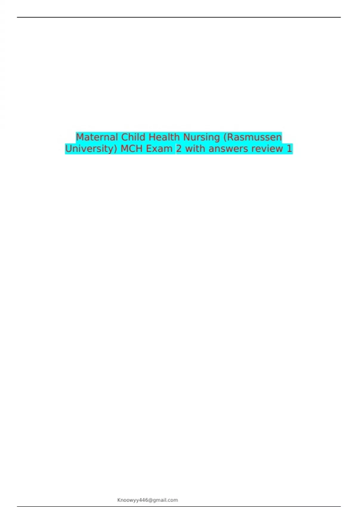 Maternal Child Health Nursing (Rasmussen University) MCH Exam 2 with answers review 1