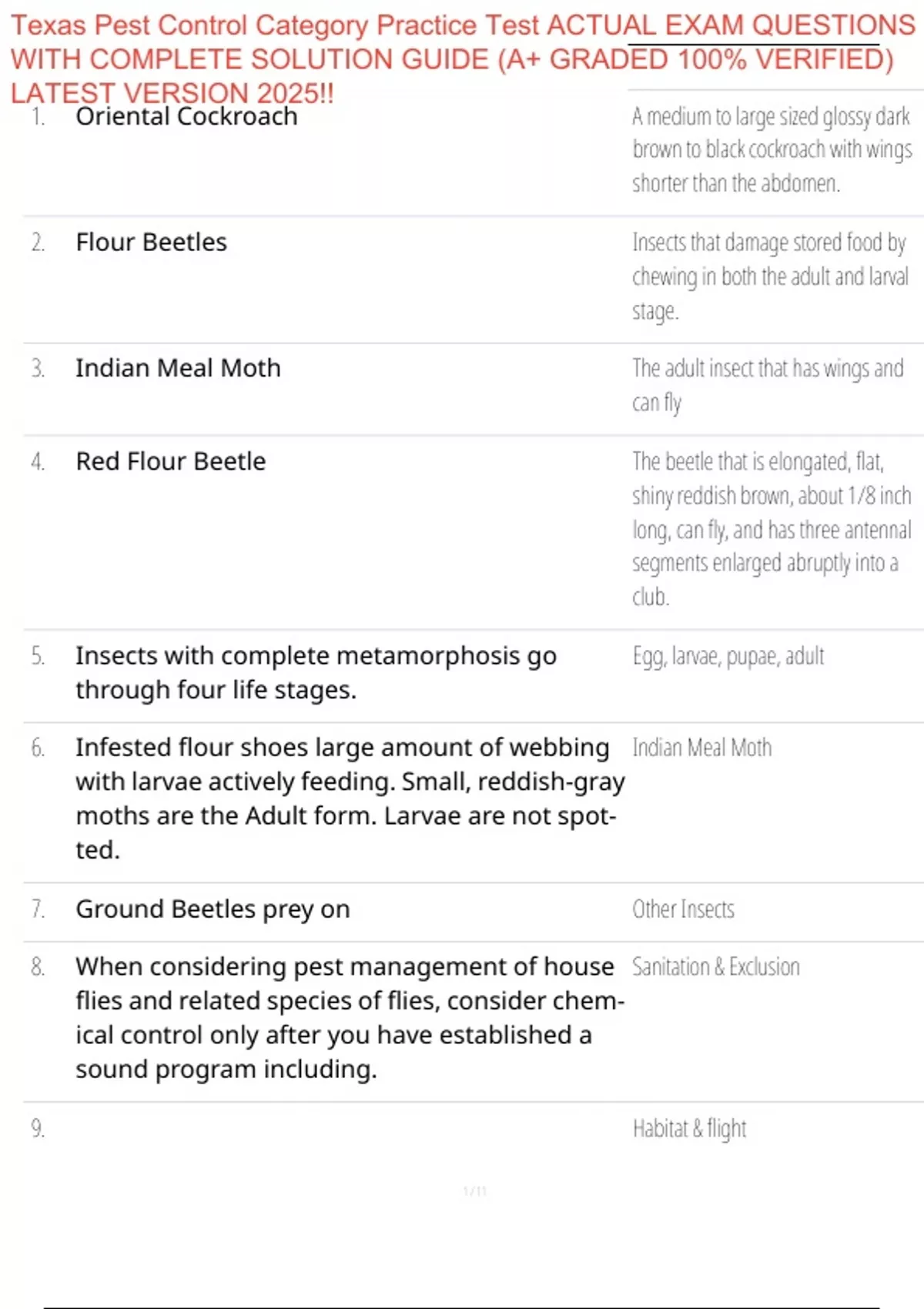 Texas Pest Control Category Practice Test ACTUAL EXAM QUESTIONS