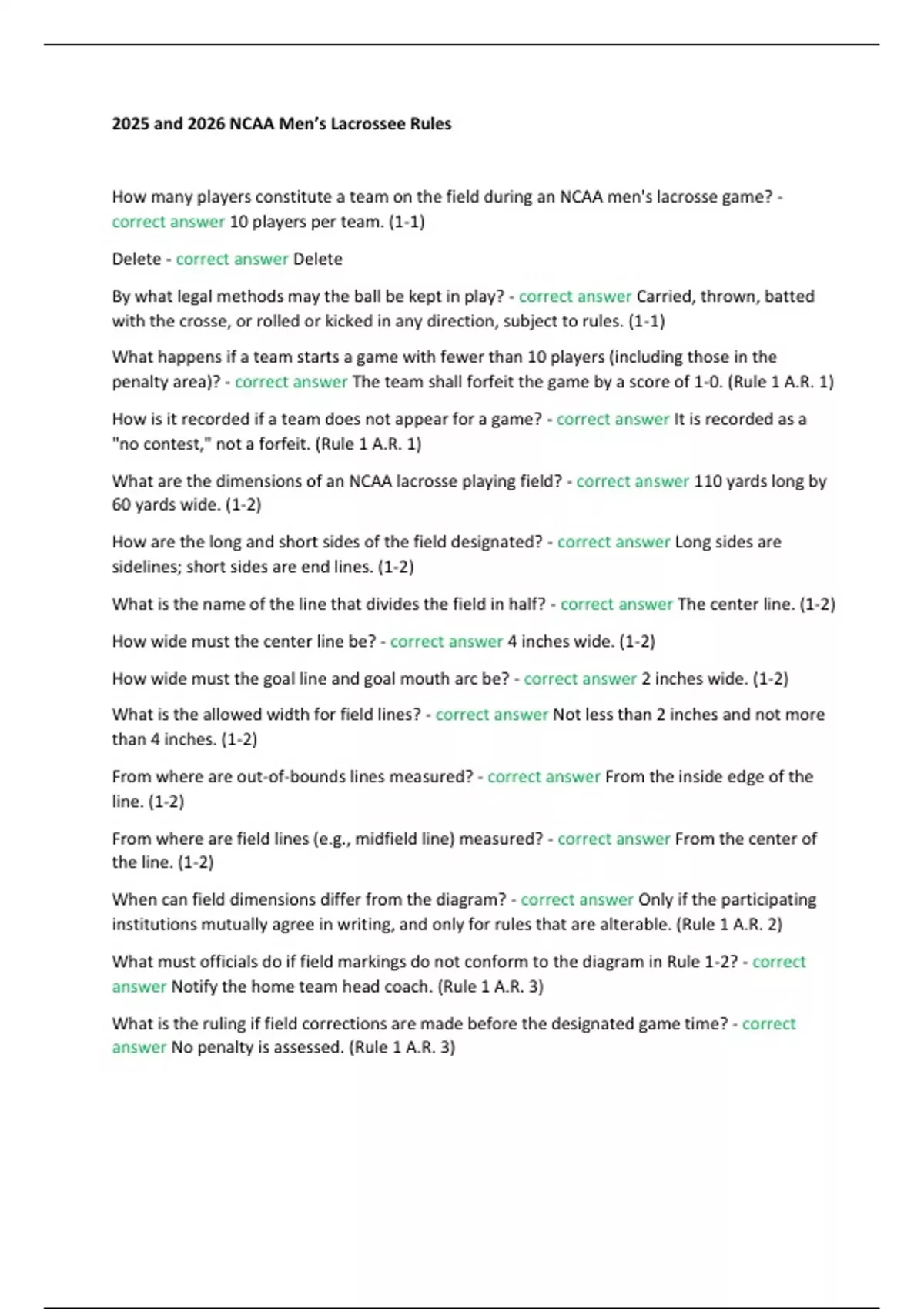 What are the dimensions of an NCAA lacrosse playing field? - correct answer 110 yards long by