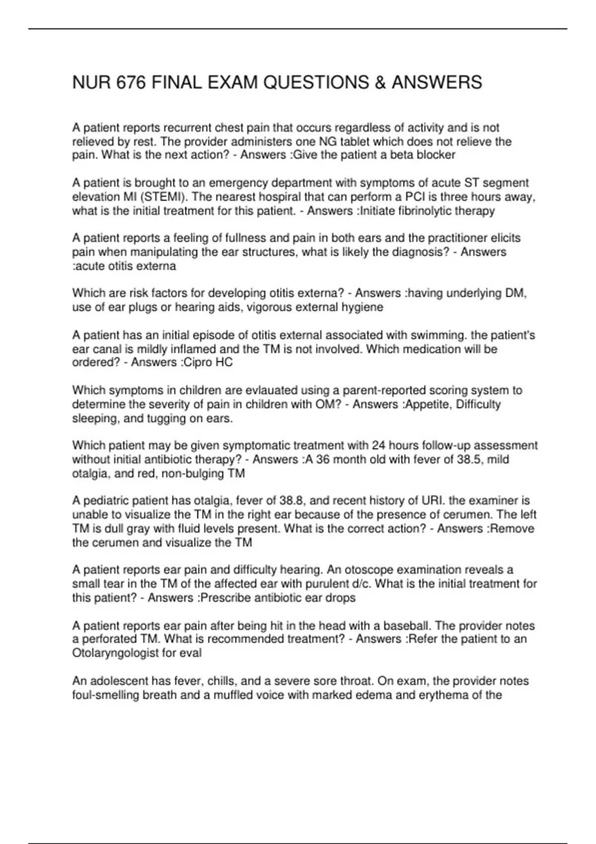 NUR 676 FINAL EXAM QUESTIONS & ANSWERS