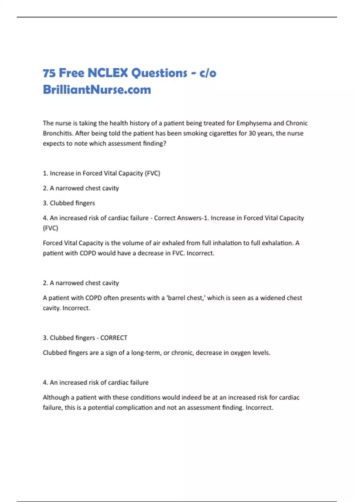 75 Free NCLEX Questions - c/o
