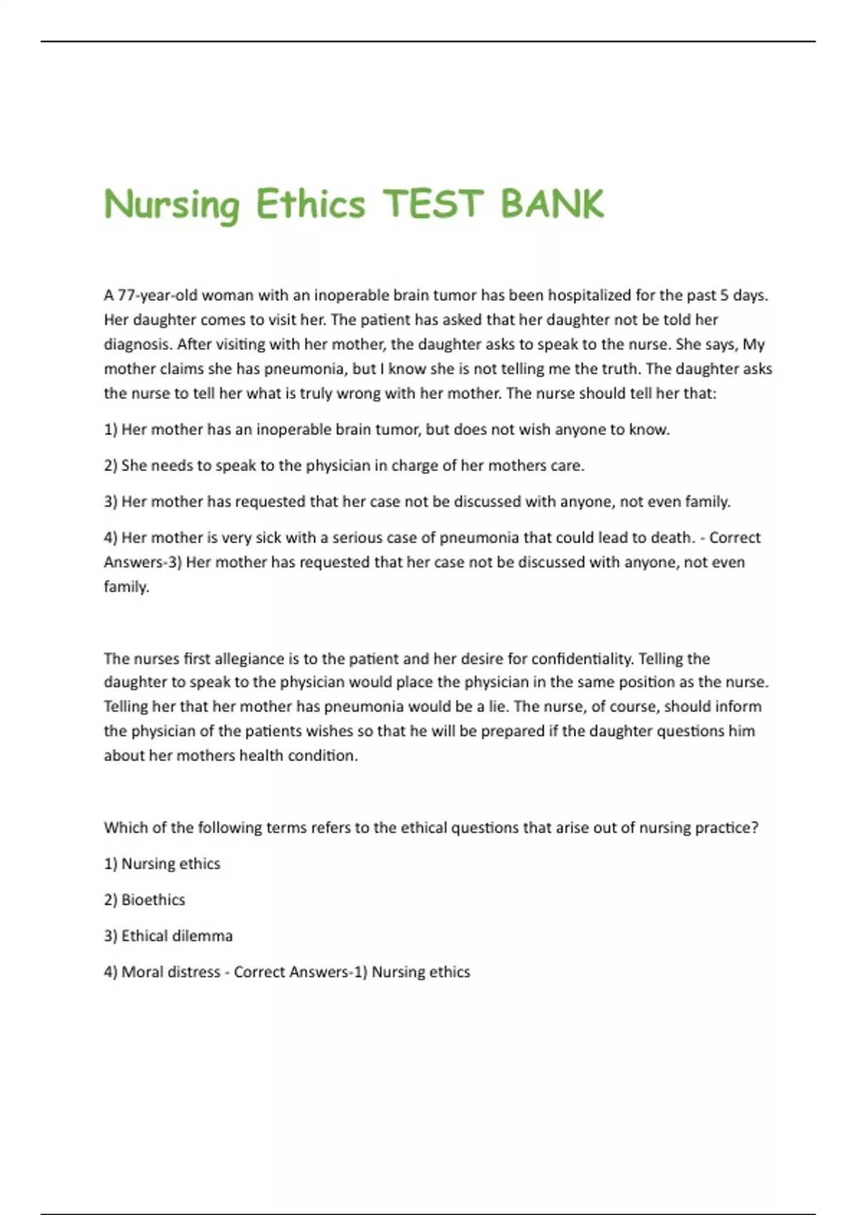 4) Moral distress - Correct Answers-1) Nursing ethics