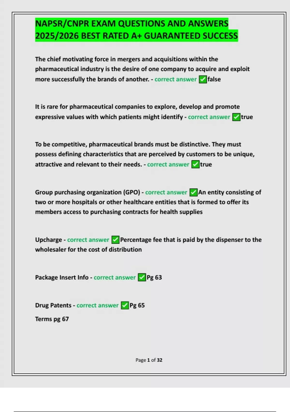 , NAPSR/CNPR EXAM QUESTIONS AND ANSWERS
