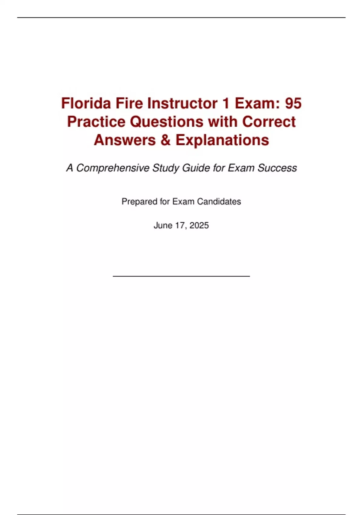 Florida Fire Instructor 1 Exam: 95 Practice Questions with Correct Answers & Explanations A Comprehensive Study Guide for Exam Success Prepared for Exam Candidates June 17, 2025