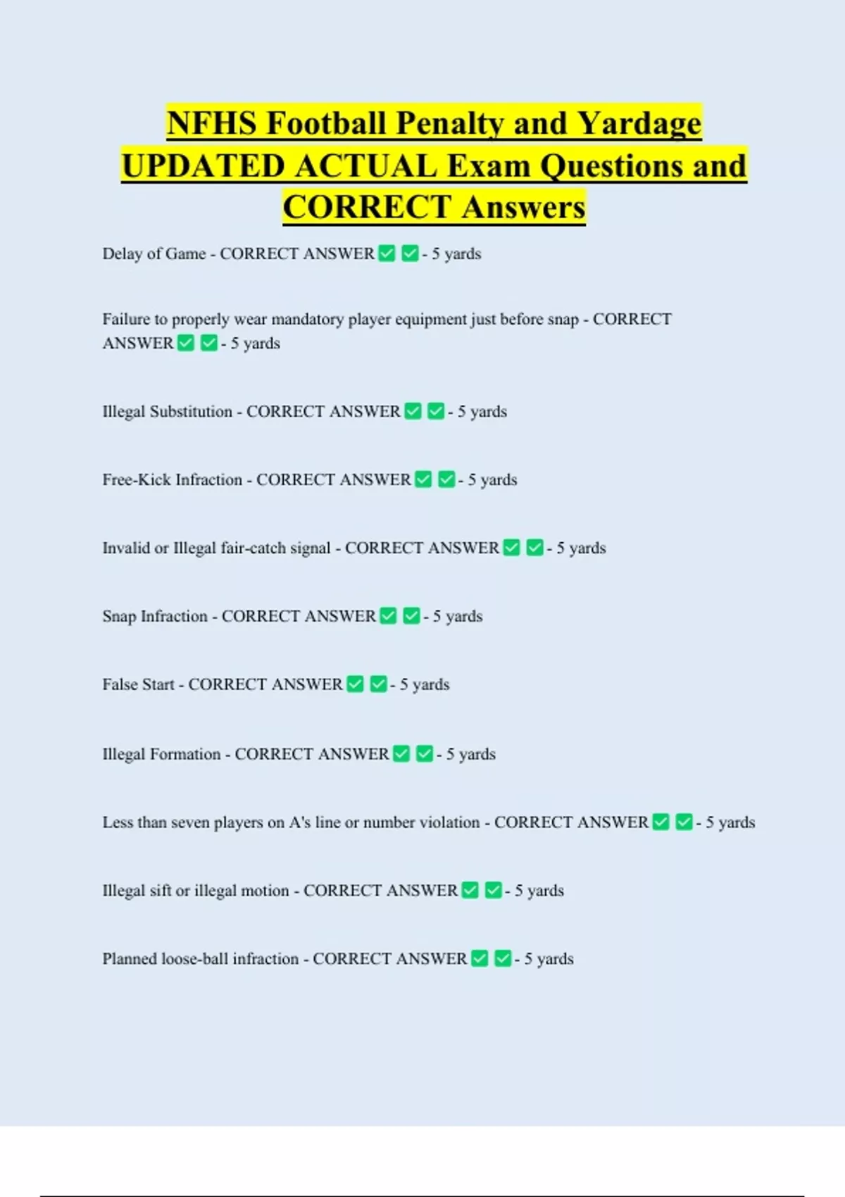 Delay of Game - CORRECT ANSWER - 5 yards