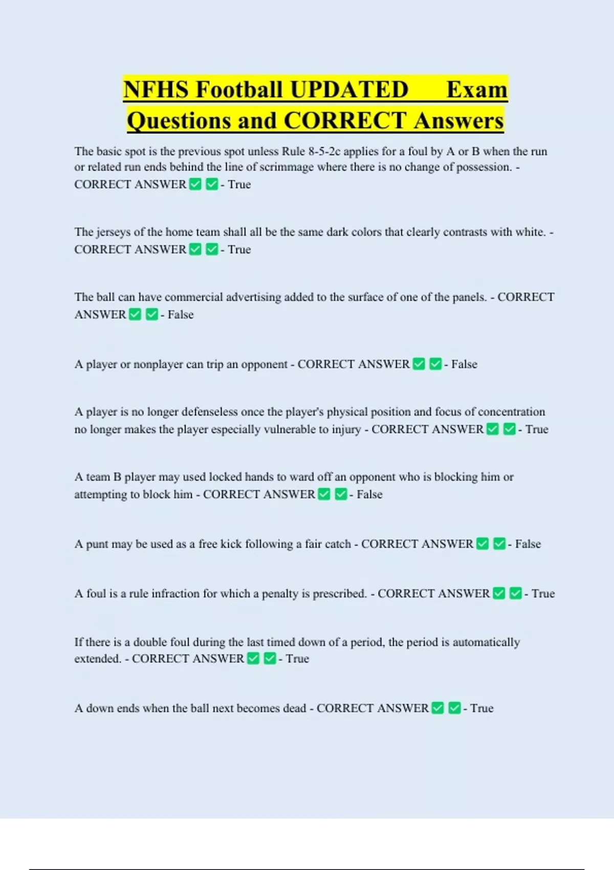 A punt may be used as a free kick following a fair catch - CORRECT ANSWER - False