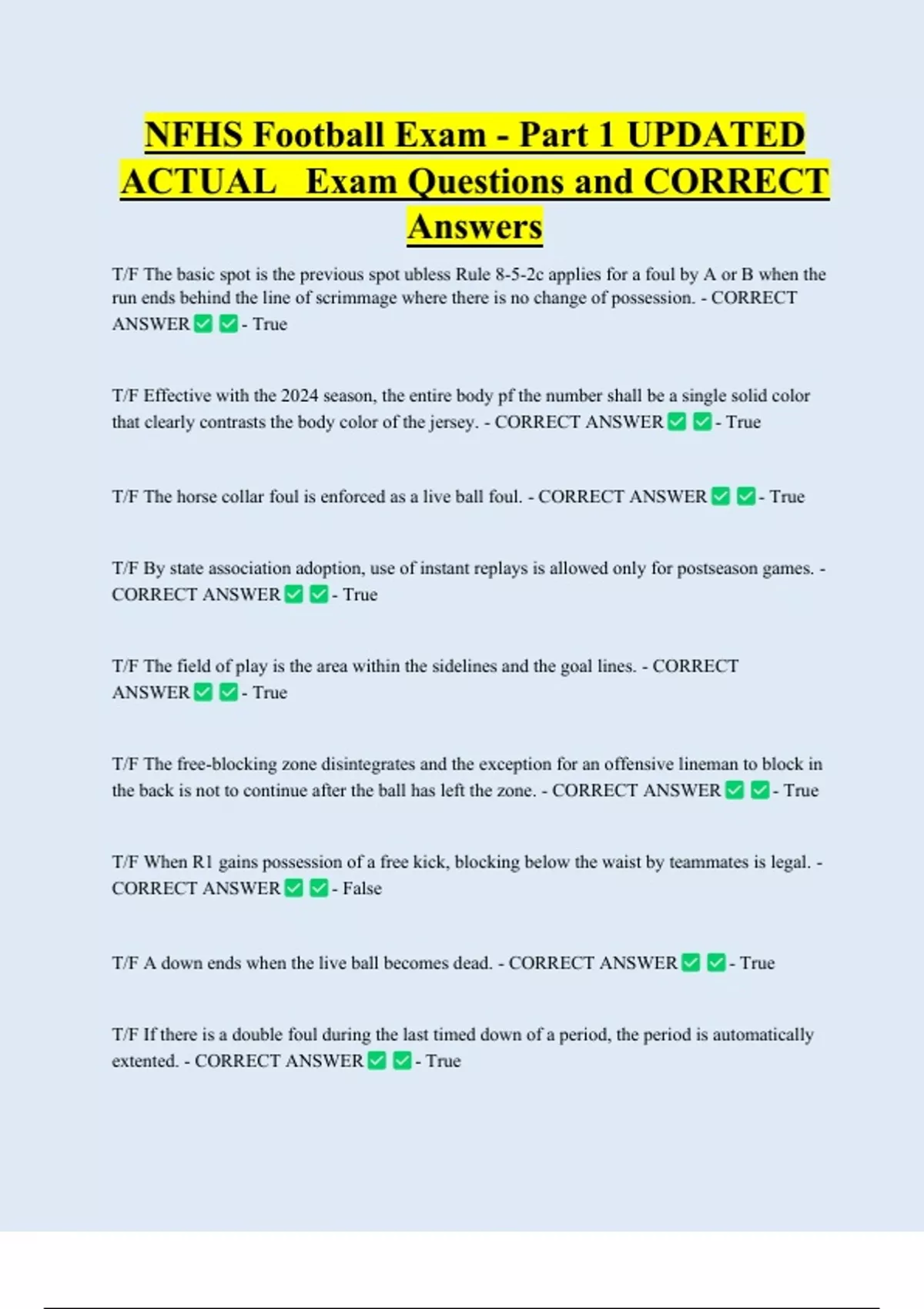 T/F The succeeding spot is where the ball was last snapped or free kicked. - CORRECT
