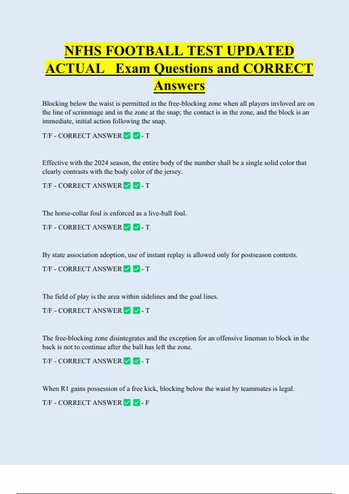 T/F - CORRECT ANSWER -T