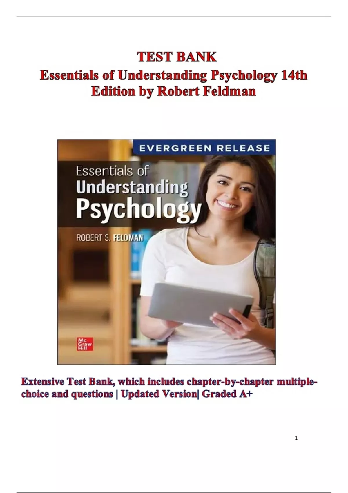 Comprehensive test bank for Essentials of Understanding Psychology, 14th Edition by Robert Feldman, featuring over 1,000 chapter-by-chapter multiple-choice questions with verified answers, short-answer prompts, and detailed answer keys. Designed for educators and students, this resource covers core psychology topics—including biological bases of behavior, sensation and perception, consciousness, learning, and research methods—to enhance exam preparation, curriculum development, and mastery of AP®/introductory psychology concepts