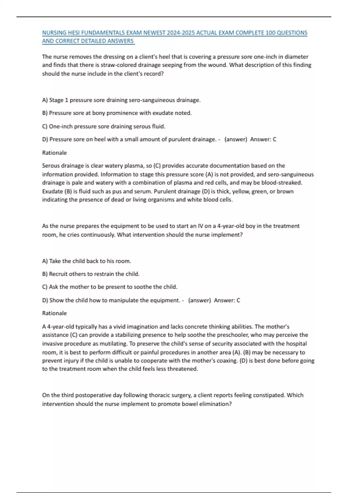 NURSING HESI FUNDAMENTALS EXAM NEWEST 2024-2025 ACTUAL EXAM COMPLETE 100 QUESTIONS