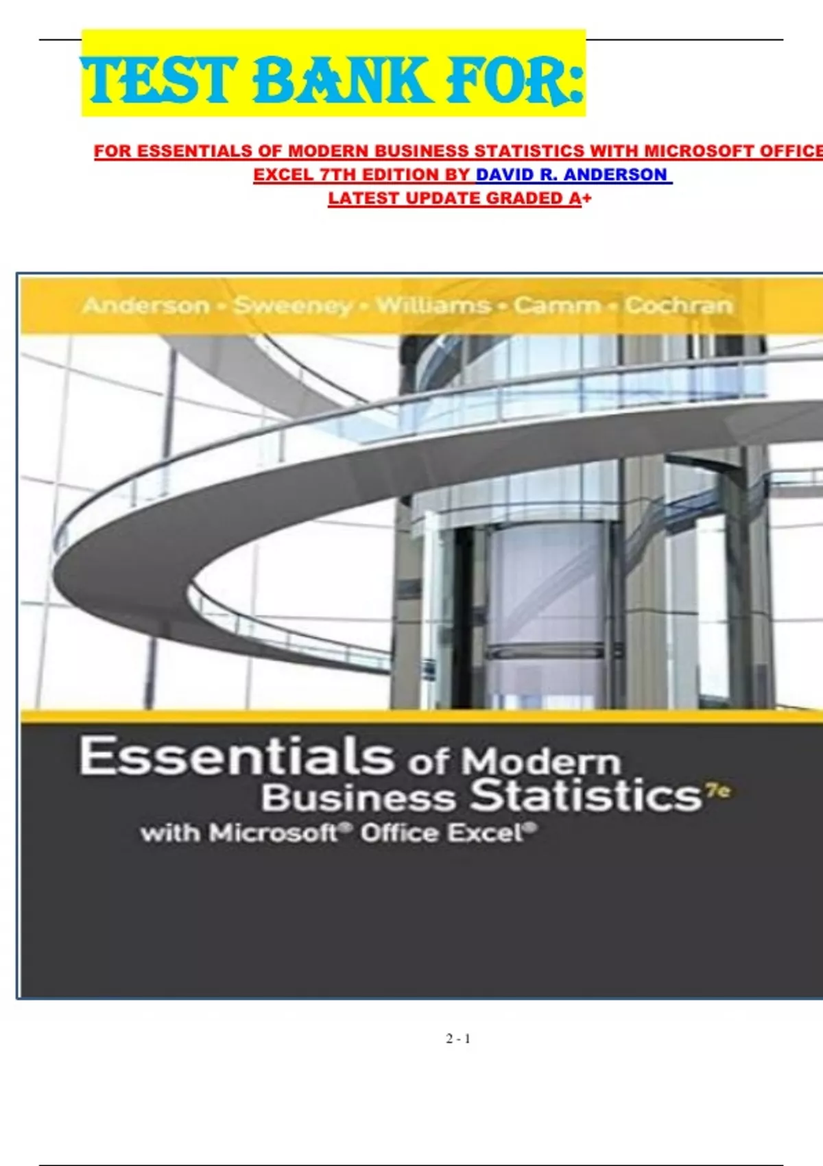 TEST BANK FOR: FOR ESSENTIALS OF MODERN BUSINESS STATISTICS WITH MICROSOFT OFFICE EXCEL 7TH EDITION BY DAVID R. ANDERSON LATEST UPDATE GRADED A+