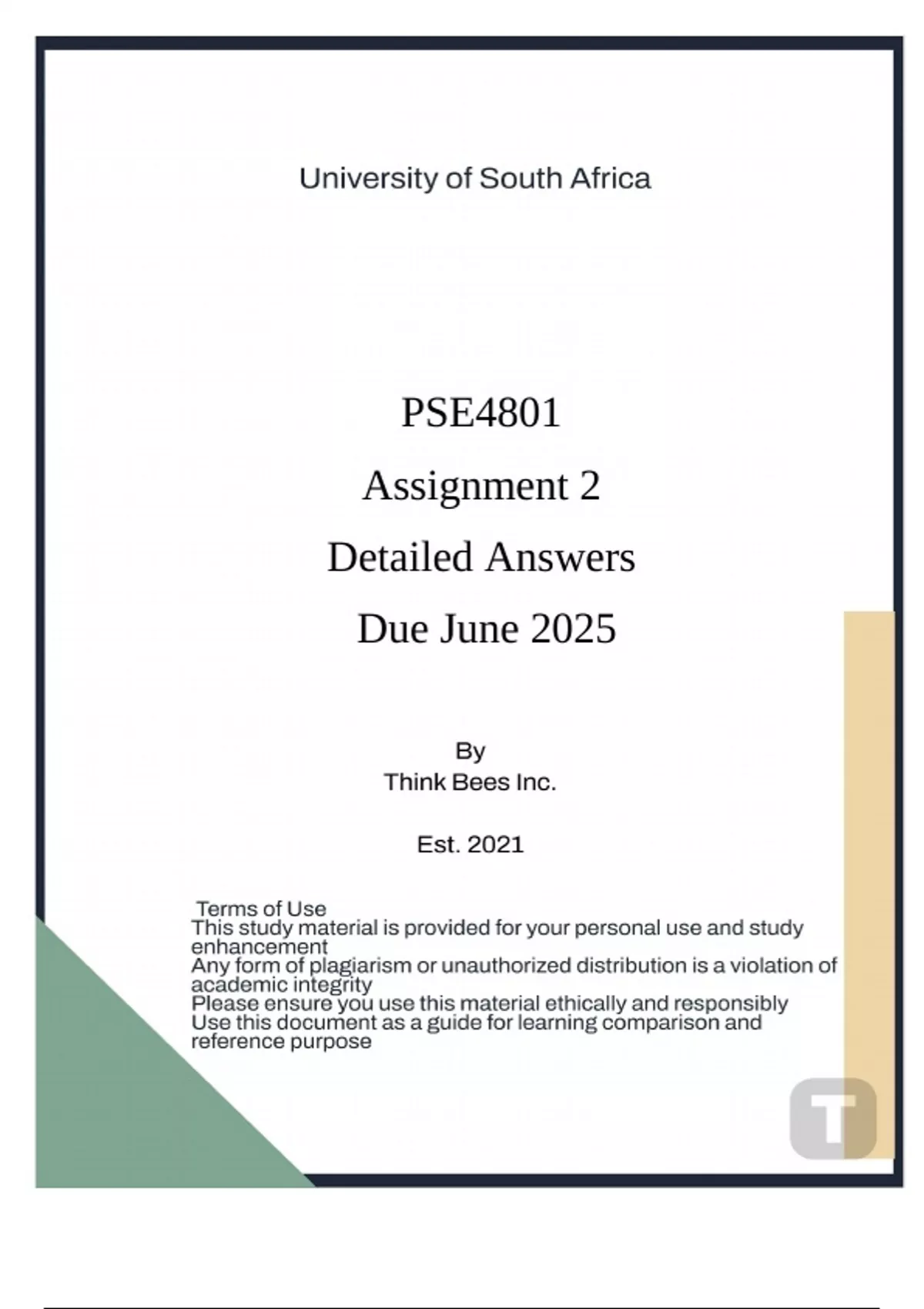 PSE4801 Assignment 2 Detailed Answers Due June 2025