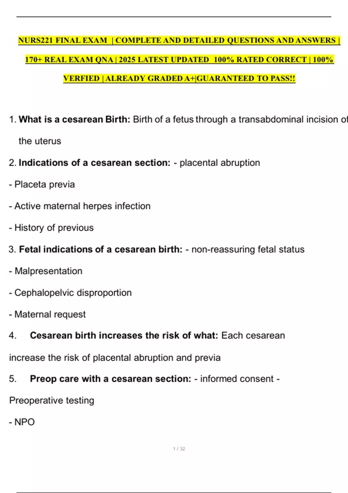 5. Preop care with a cesarean section: - informed consent -