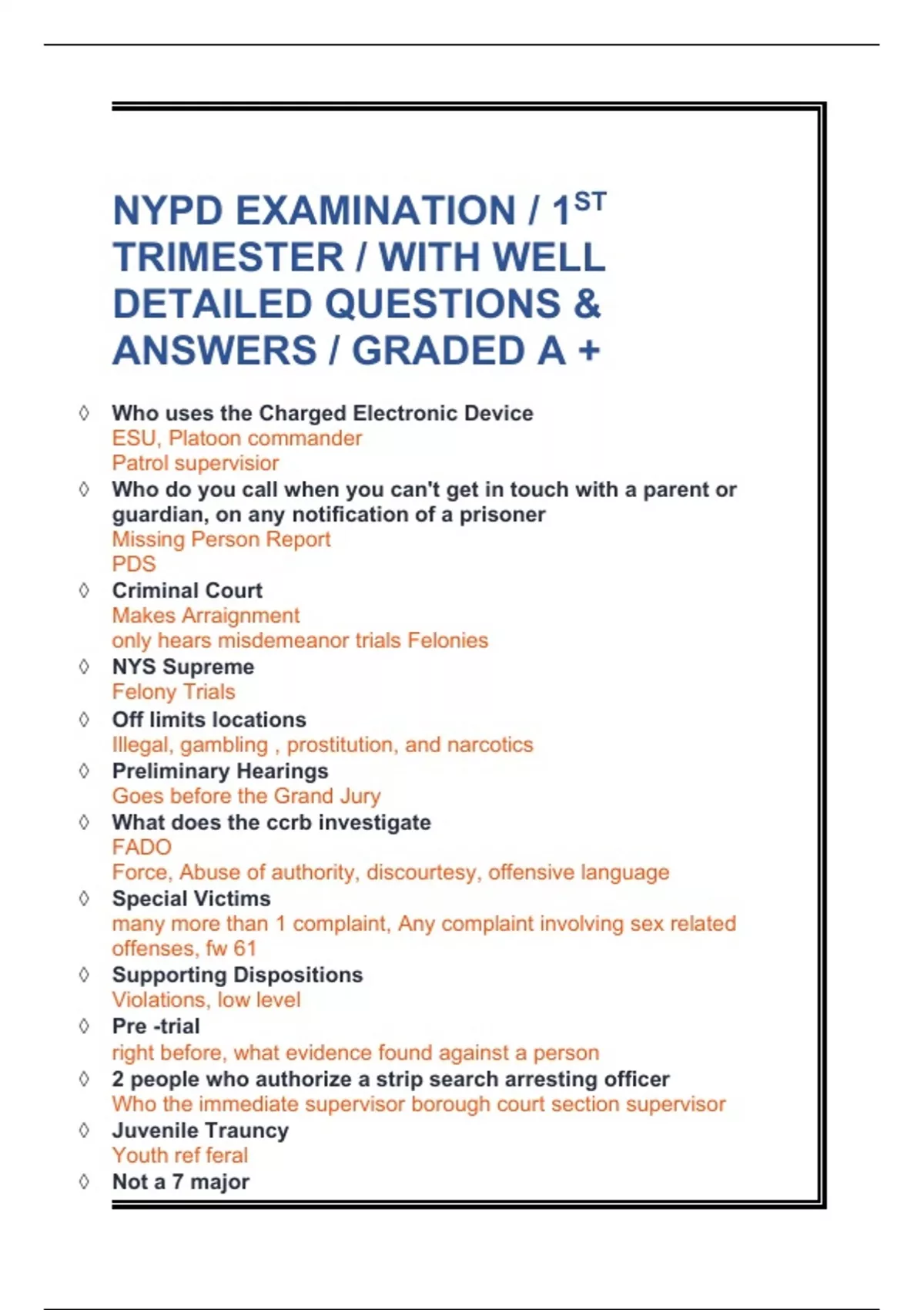 NYPD EXAMINATION / 1st TRIMESTER / WITH DETAILED QUESTIONS & ANSWERS / GRADED A +