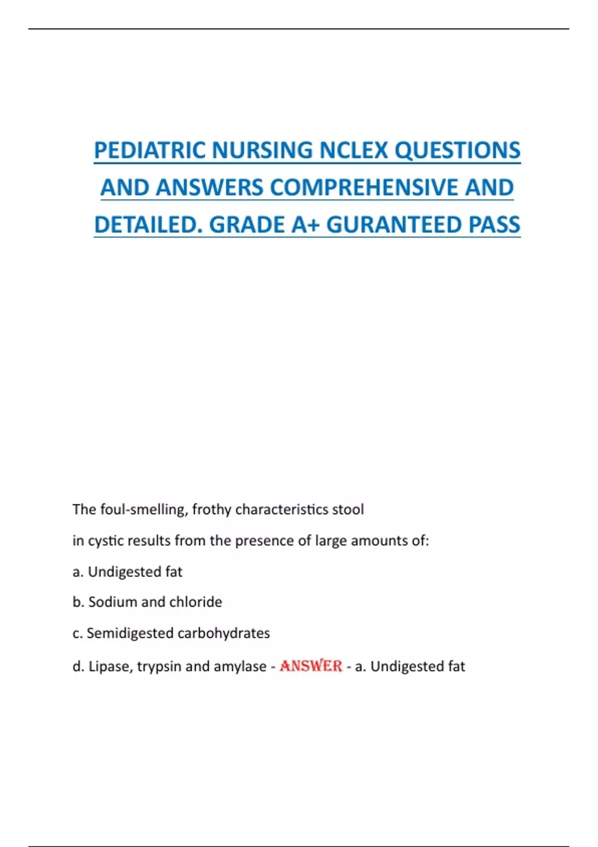 , d. Glucose in urine - ANSWER - a. Fatty stools