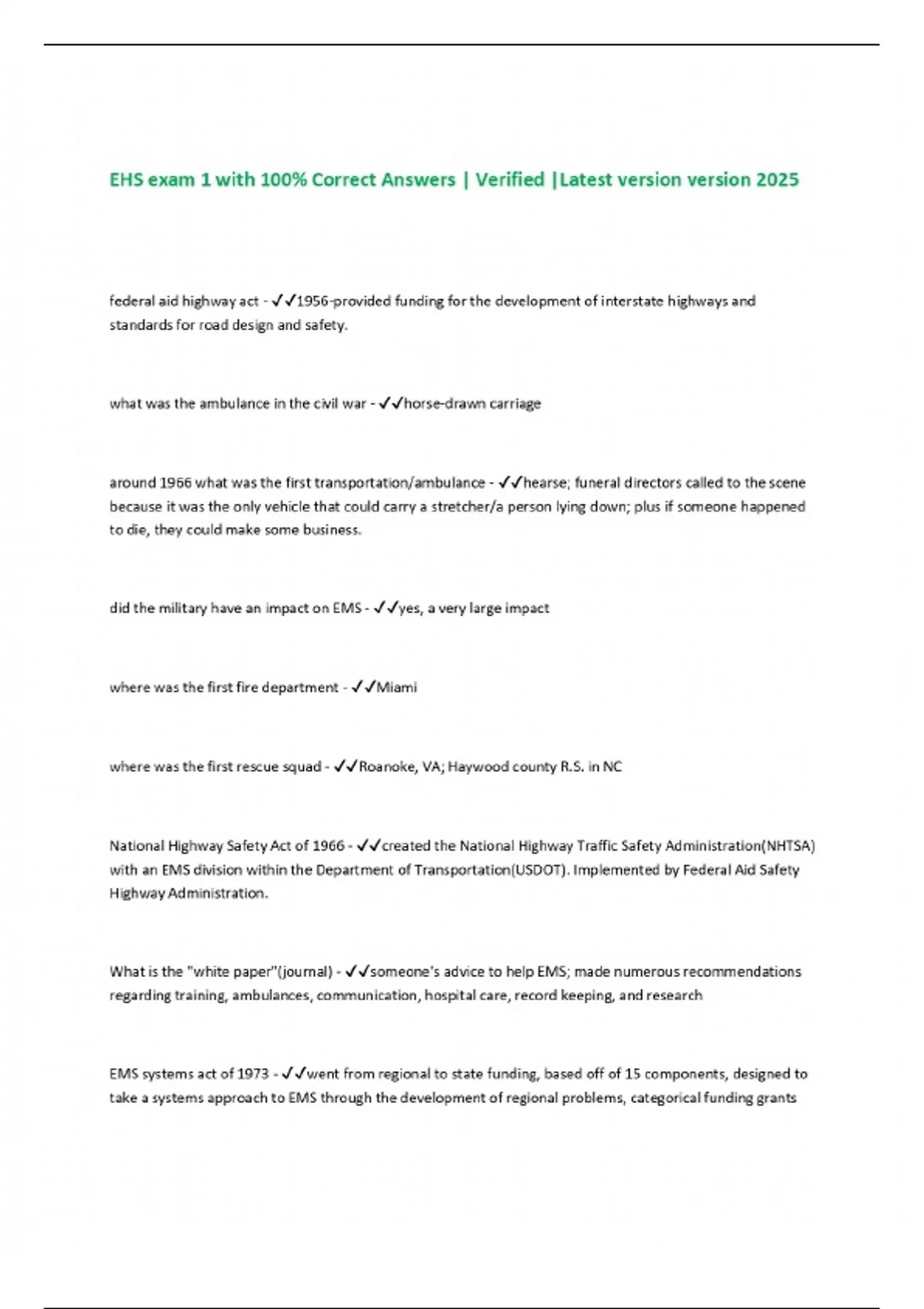 ehs exam 1 with 100 correct answers verified l