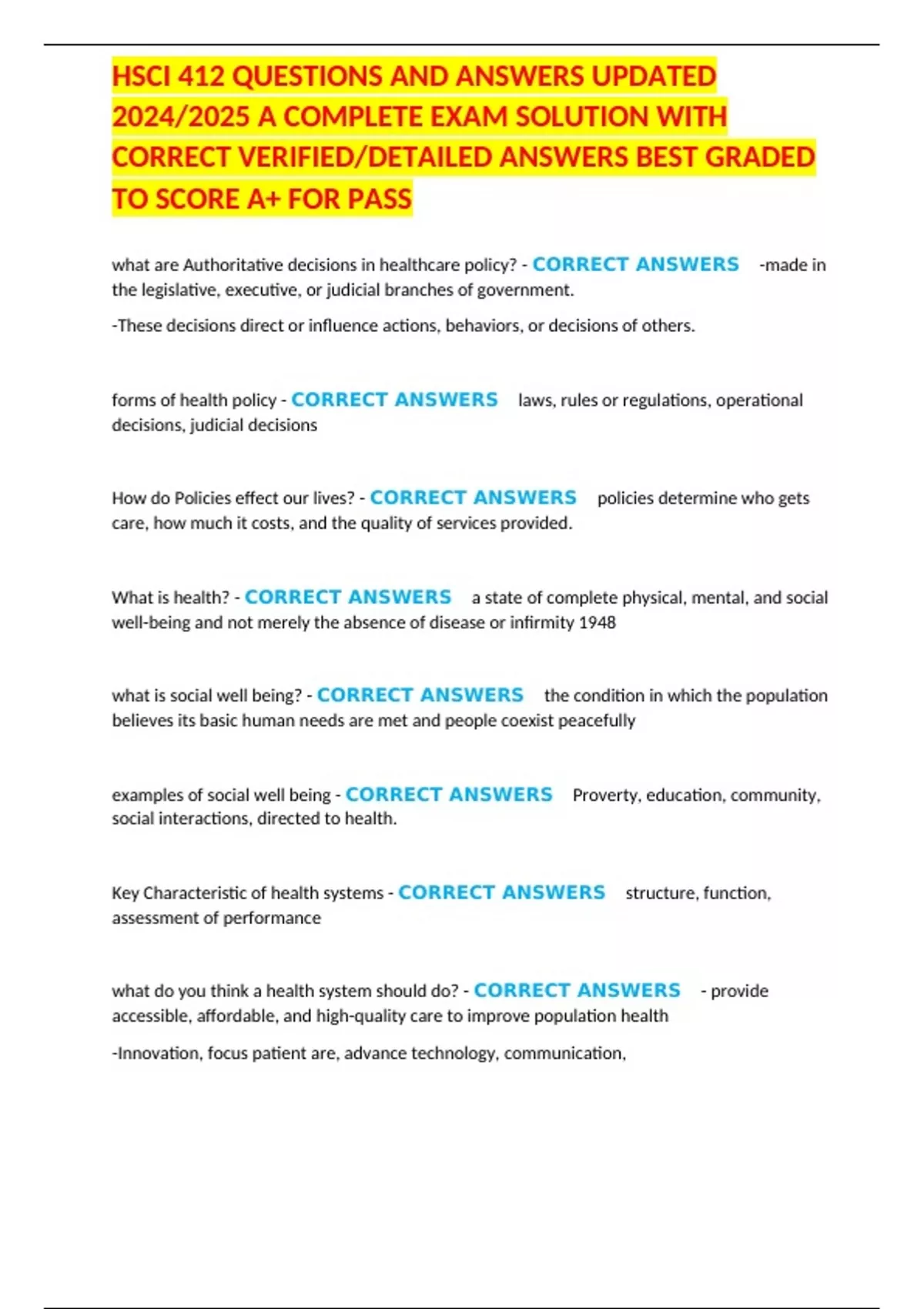 HSCI 412 QUESTIONS AND ANSWERS UPDATED