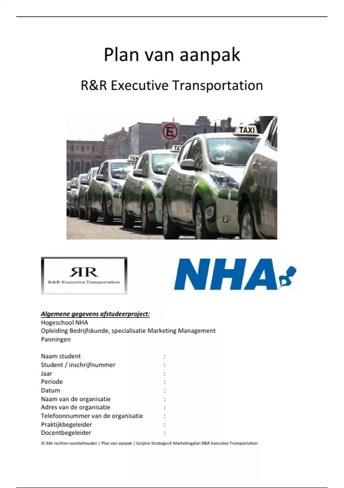 © Alle rechten voorbehouden | Plan van aanpak | Scriptie Strategisch Marketingplan R&R Executive Transportation